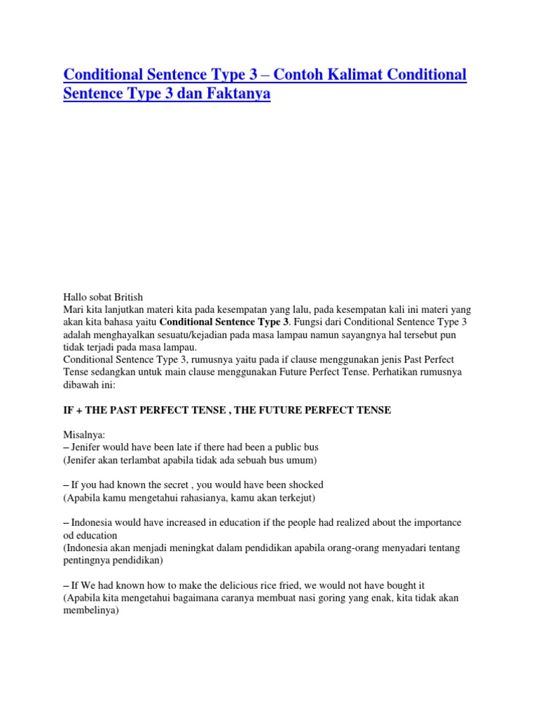 DOC) Pengertian Conditional Sentence Type 3 | ita iza - Academia.edu