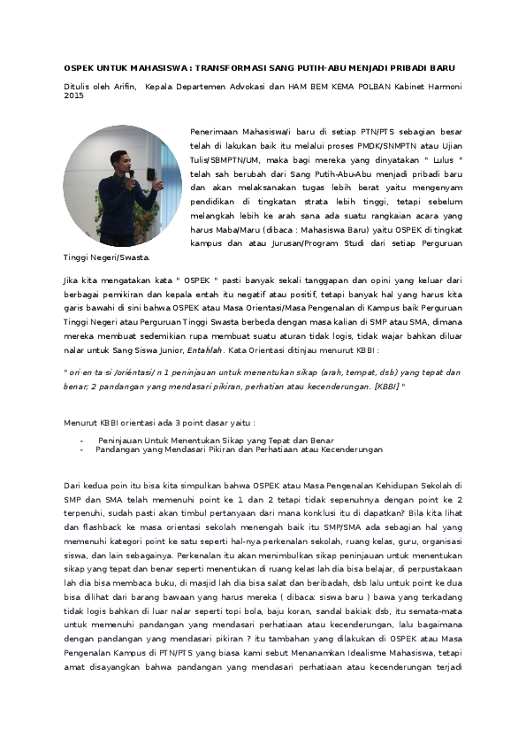 DOC) OSPEK UNTUK MAHASISWA : TRANFORMASI SANG PUTIH-ABU MENJADI …