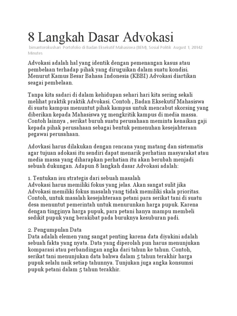 8 Langkah Dasar Advokasi (opini: @bimantorokshr) – BEM FEB Telkom …