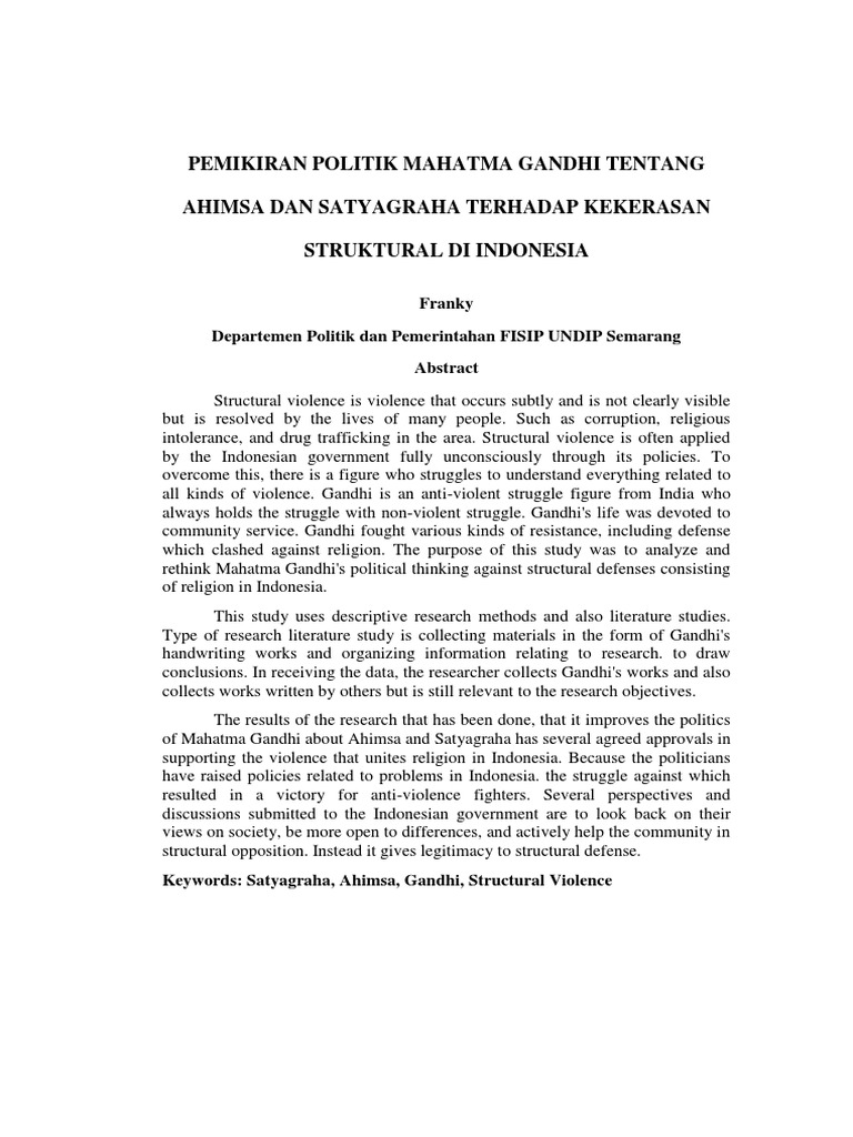 PDF) Nasionalisme Humanistis Mahatma Gandhi