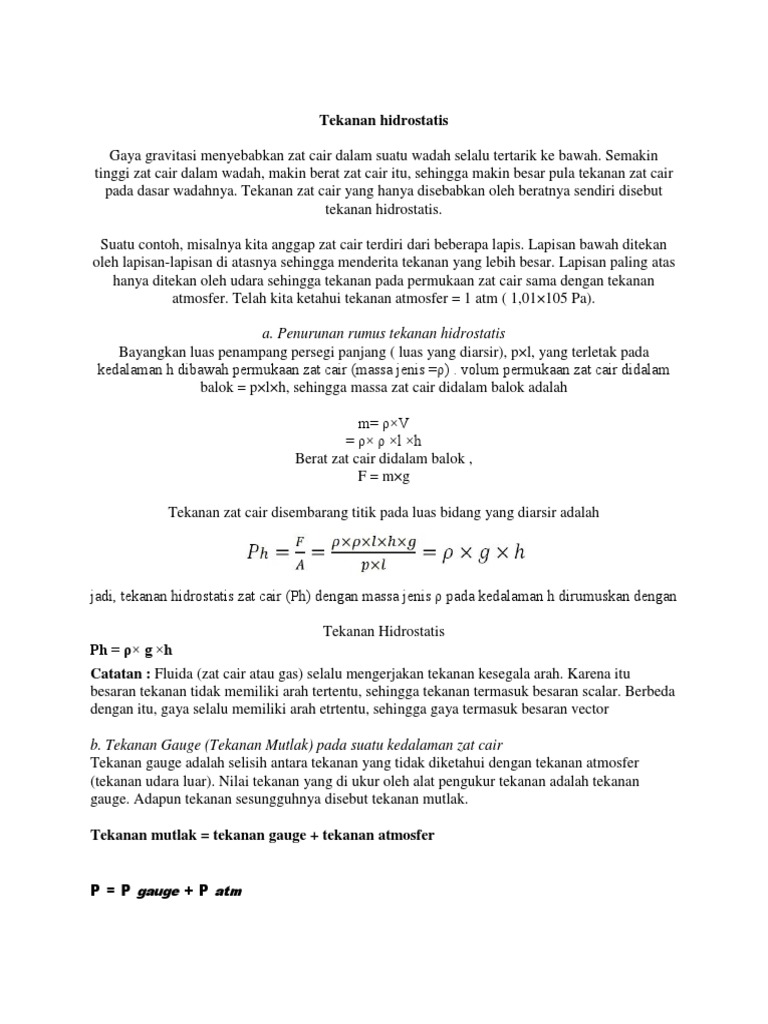 DOC) Pengertian dan definisi tekanan Hidrostatik | Farjan M Saud …