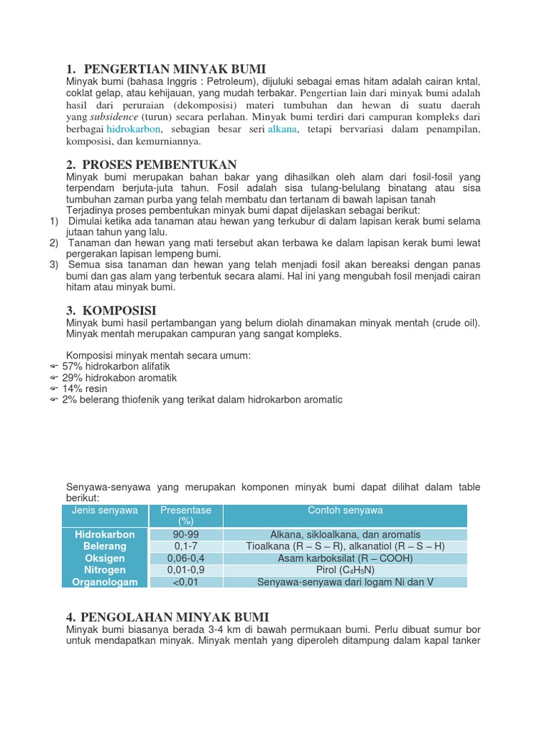 Pembentukan, Komposisi dan Pengolahan Minyak Bumi - KajianPustaka.com