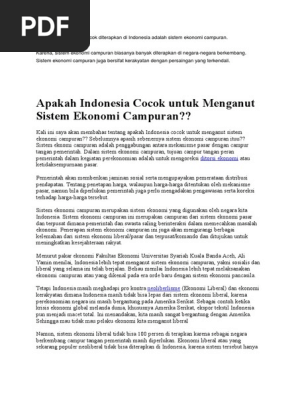 Sistem Ekonomi Yang Cocok Diterapkan Di Indonesia Adalah Sistem …