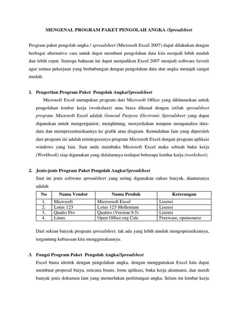 Aplikasi Pengolah Angka (Spreadsheet): Pengertian, Jenis-jenis dan …