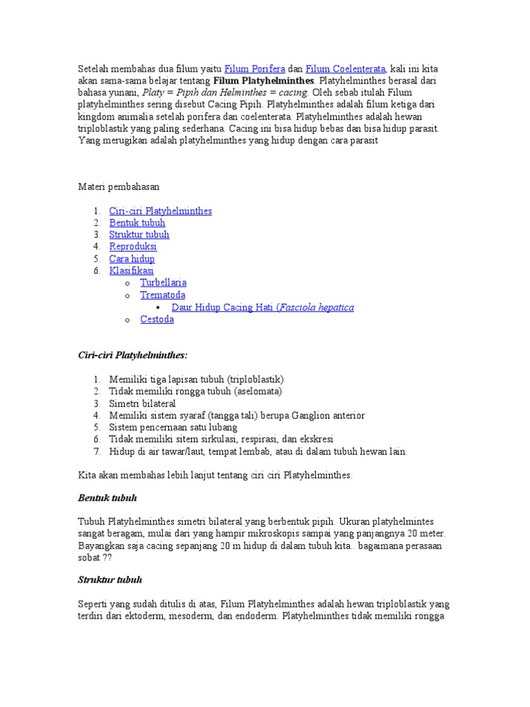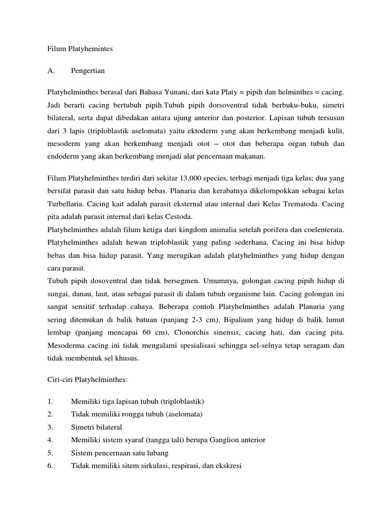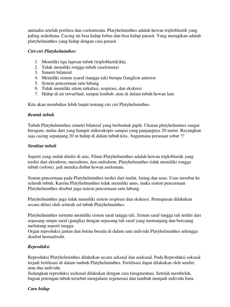 Materi Singkat Animalia Vermes (Plathyhelminthes, Nemathelminthes …
