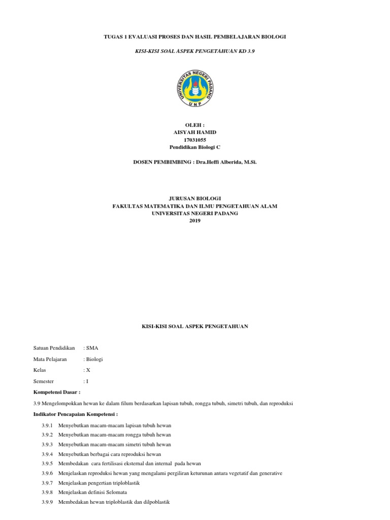 Tugas 1 Kisi-kisi Soal