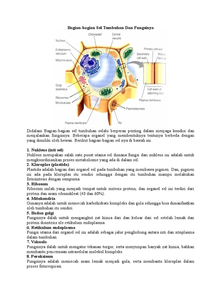 Bagian Sel Tumbuhan Beserta Fungsinya