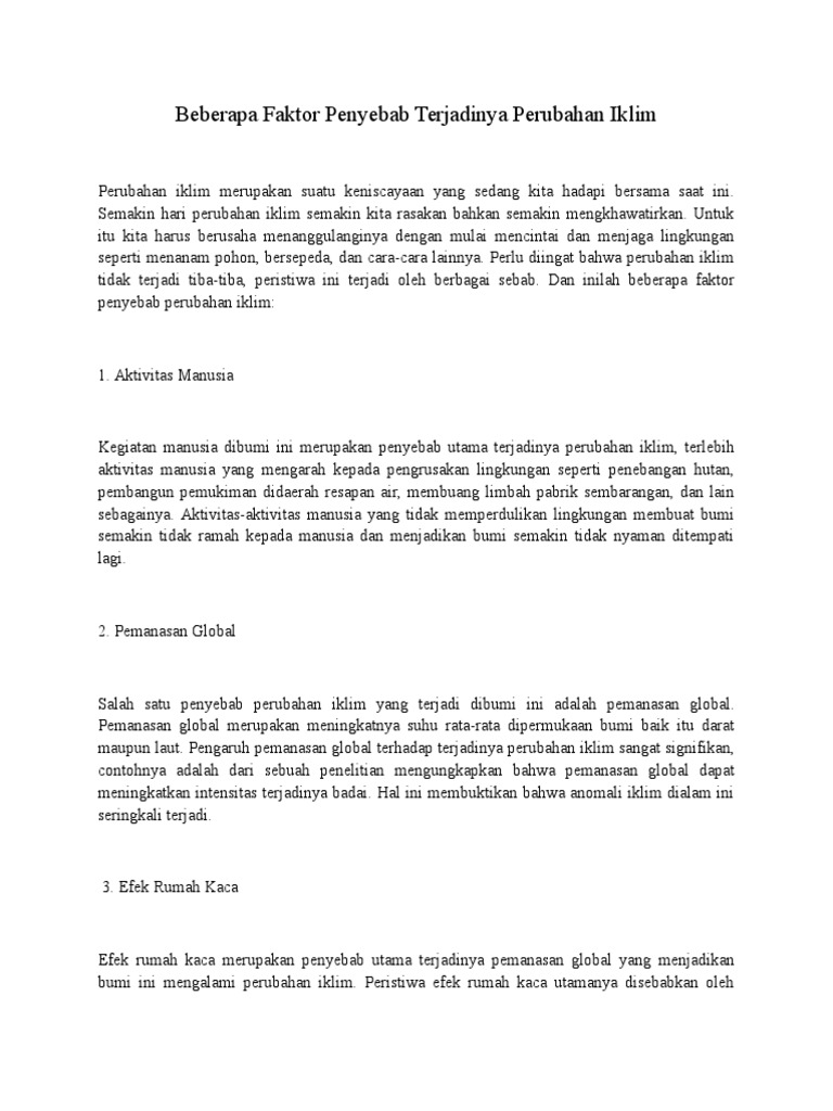Beberapa Faktor Penyebab Terjadinya Perubahan Iklim