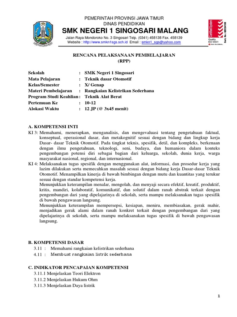 RPP 3.11 Memahami rangkaian kelistrikan sederhana.docx - RENCANA …