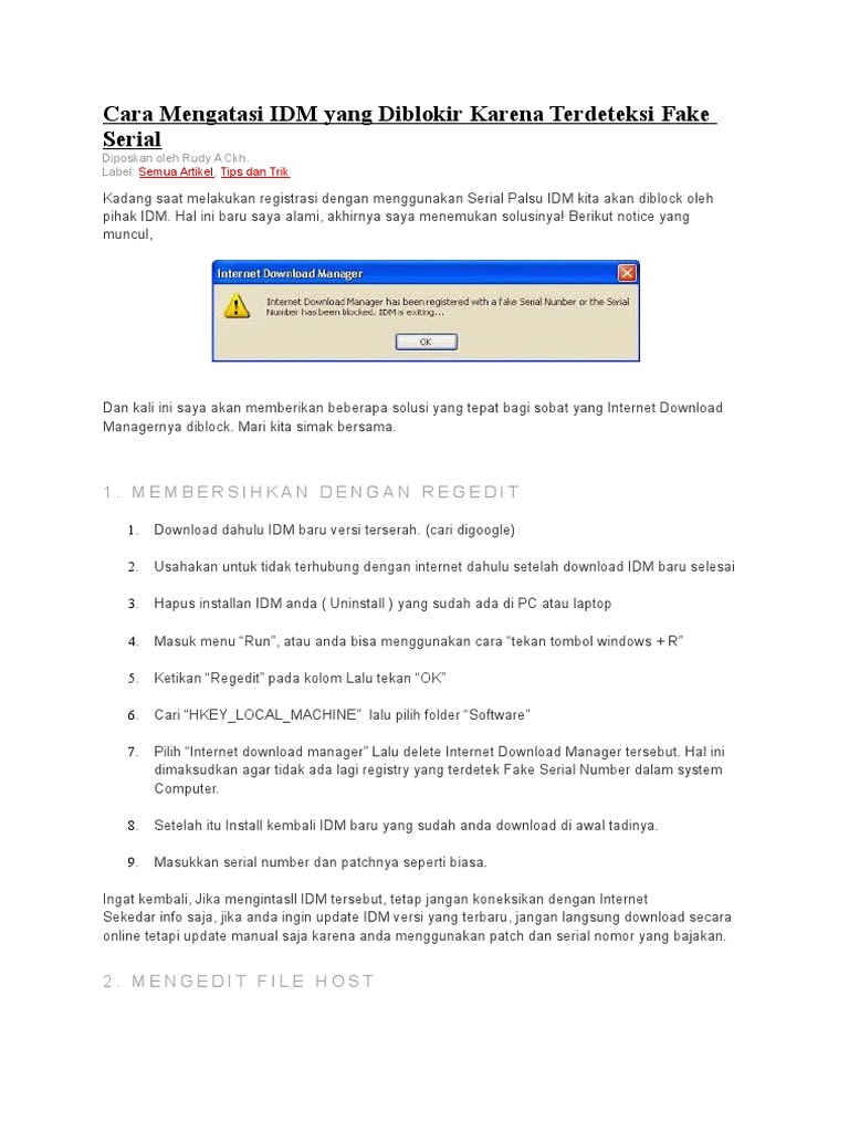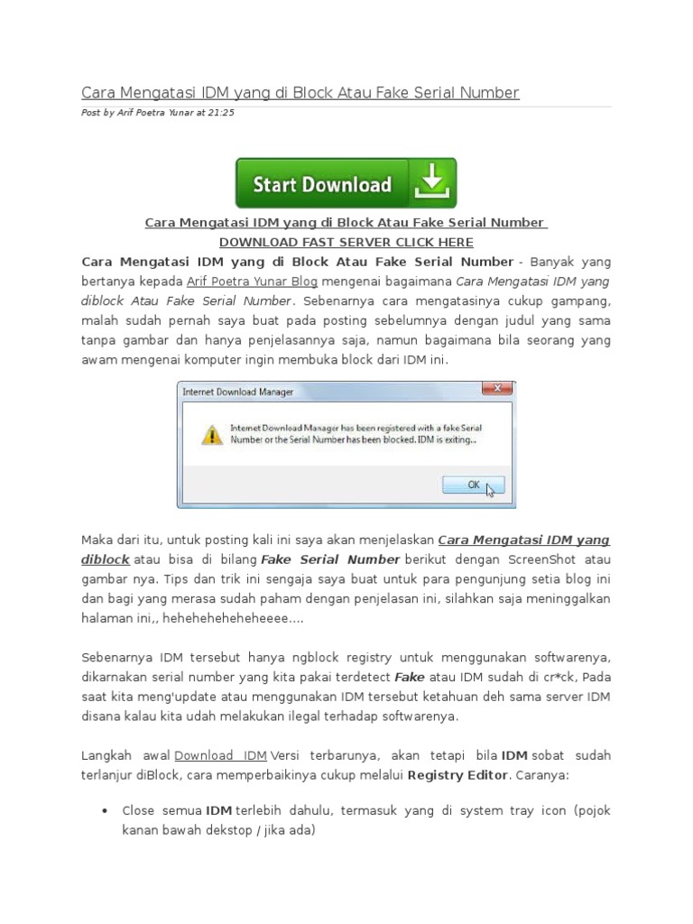 Cara Mengatasi IDM yang di Block Atau Fake Serial Number …