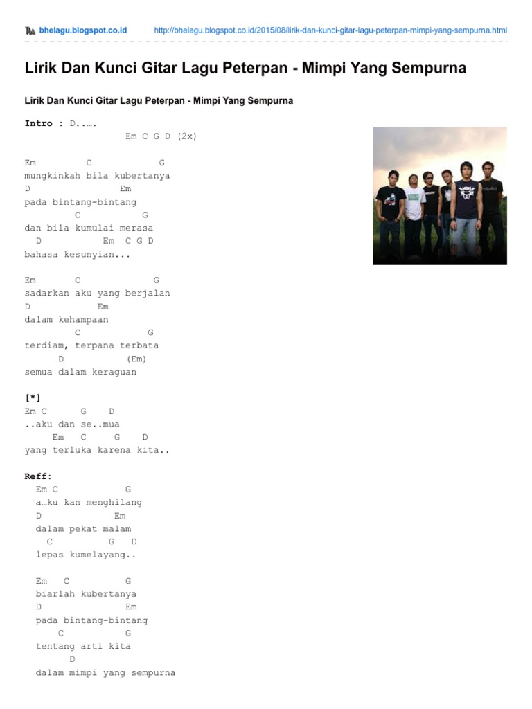 Peterpan Mimpi Yang Sempurna ¦ Kumpulan Kunci Gitar Lirik Lagu …