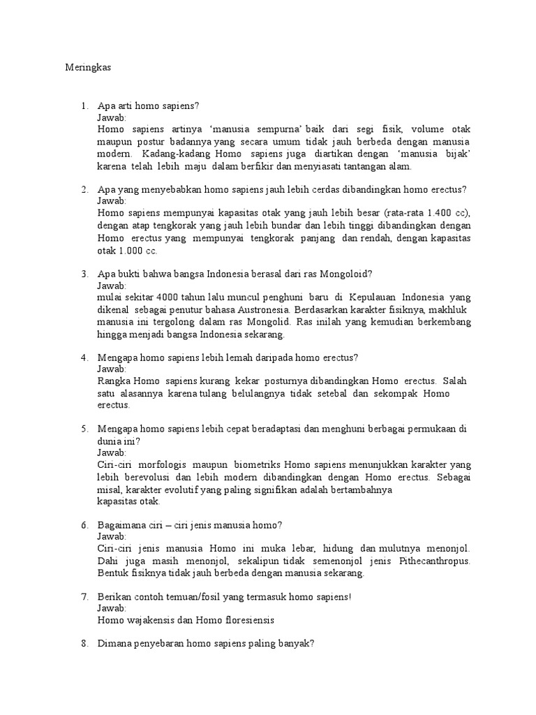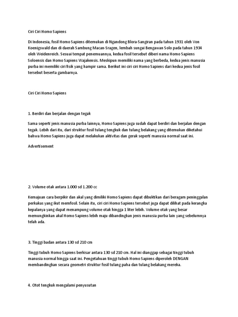 Ciri Ciri Fisik Homo Sapiens