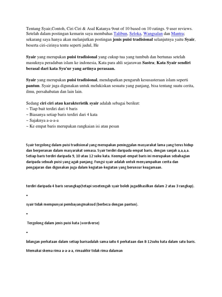 DOC) Ciri ciri syair dan pantun | Rana Agustina - Academia.edu