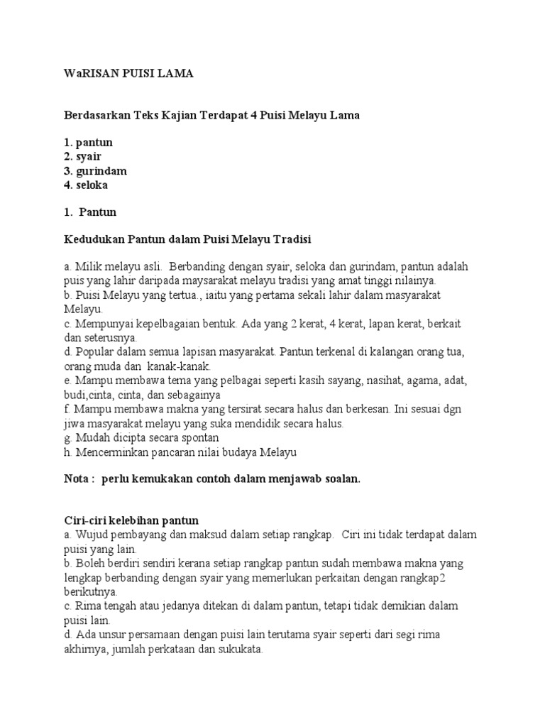 Ciri Ciri Puisi Rakyat Pantun Gurindam Dan Syair - KT Puisi