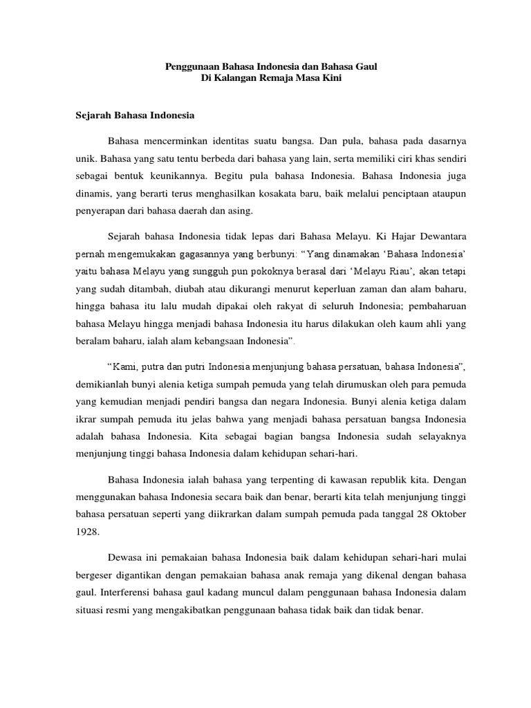 Artikel Penggunaan Bahasa Indonesia Dan Bahasa Gaul