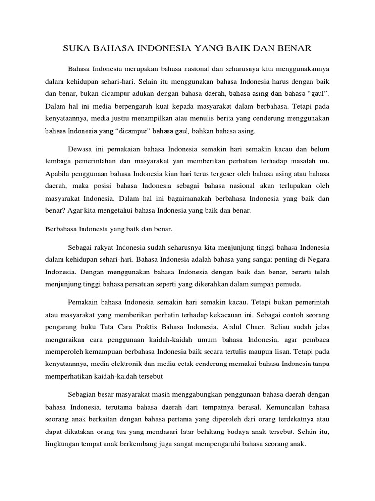 Suka Bahasa Indonesia Yang Baik Dan Benar