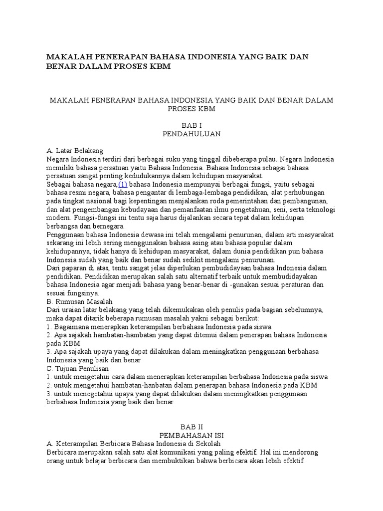 Contoh Makalah Bahasa Indonesia Yang Baik Benar