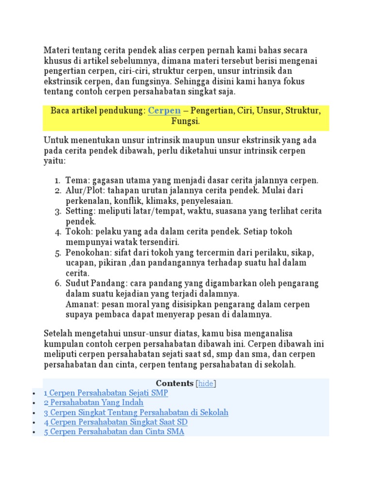 Contoh Cerpen Persahabatan Beserta Unsur Intrinsik Dan Ekstrinsik Dan Sinopsisnya | Kumpulan Soal pelajaran 10