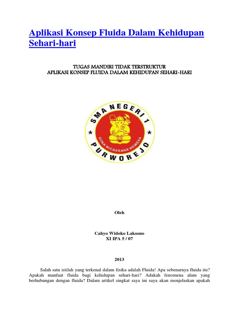DOC) APLIKASI KONSEP FLUIDA DALAM KEHIDUPAN SEHARI-HARI | Cahyo …