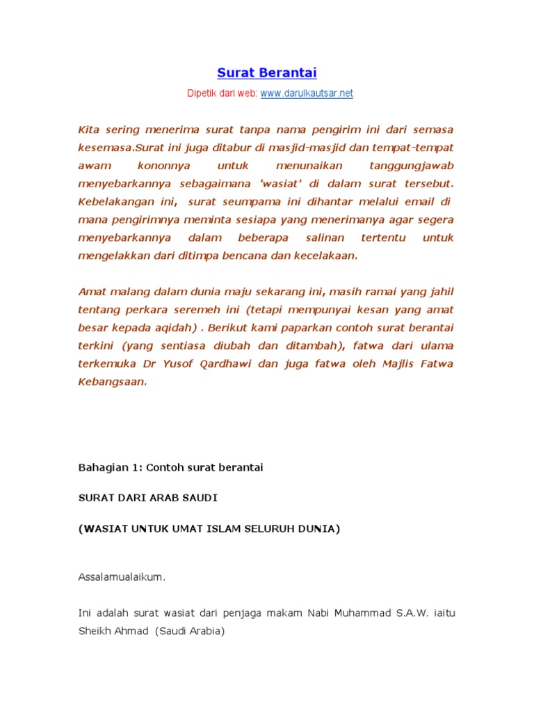 Contoh surat berantai