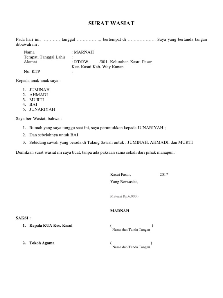 Contoh contoh surat wasiat | Notafraid in investing