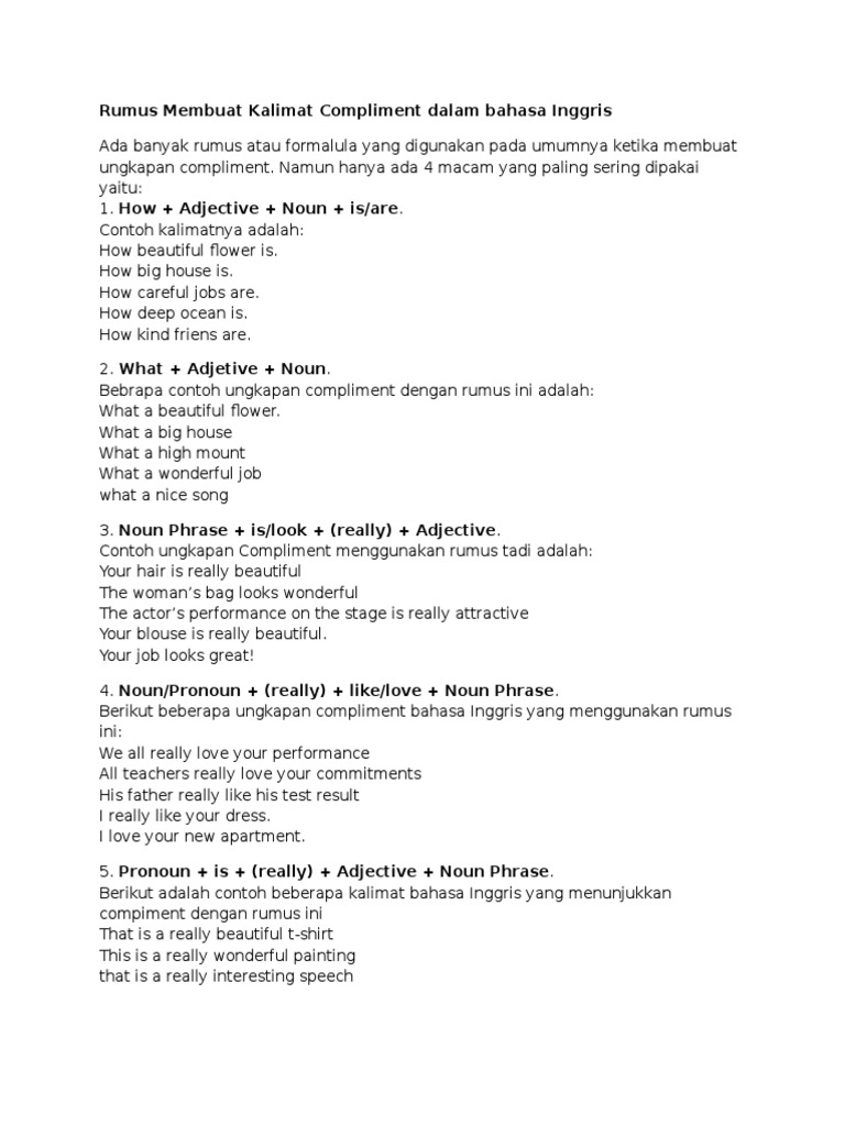 Contoh Kalimat Compliment Dalam Bahasa Inggris