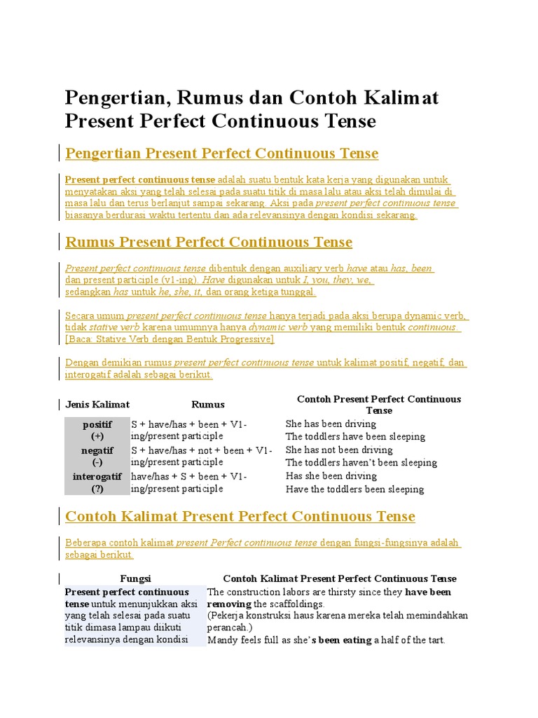 Materi, Rumus, dan Contoh Kalimat Present Perfect Continuous Tense - Jagoan Bahasa Inggris