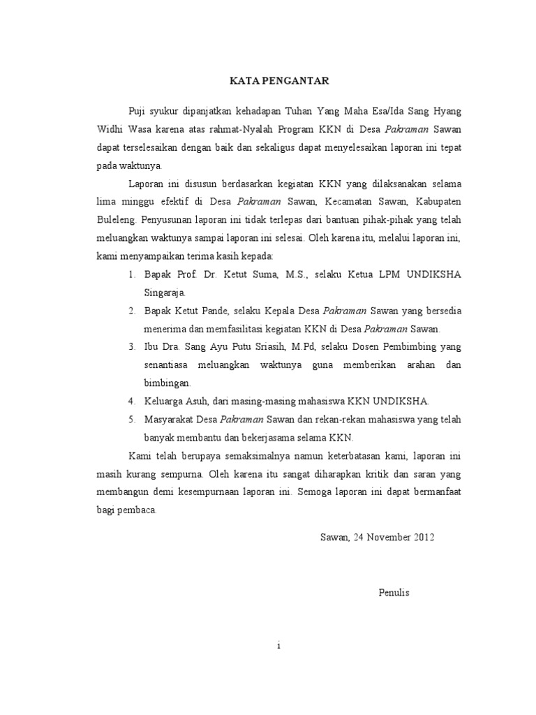DOC) KATA PENGANTAR LAPORAN KKN | Edzy Doank - Academia.edu