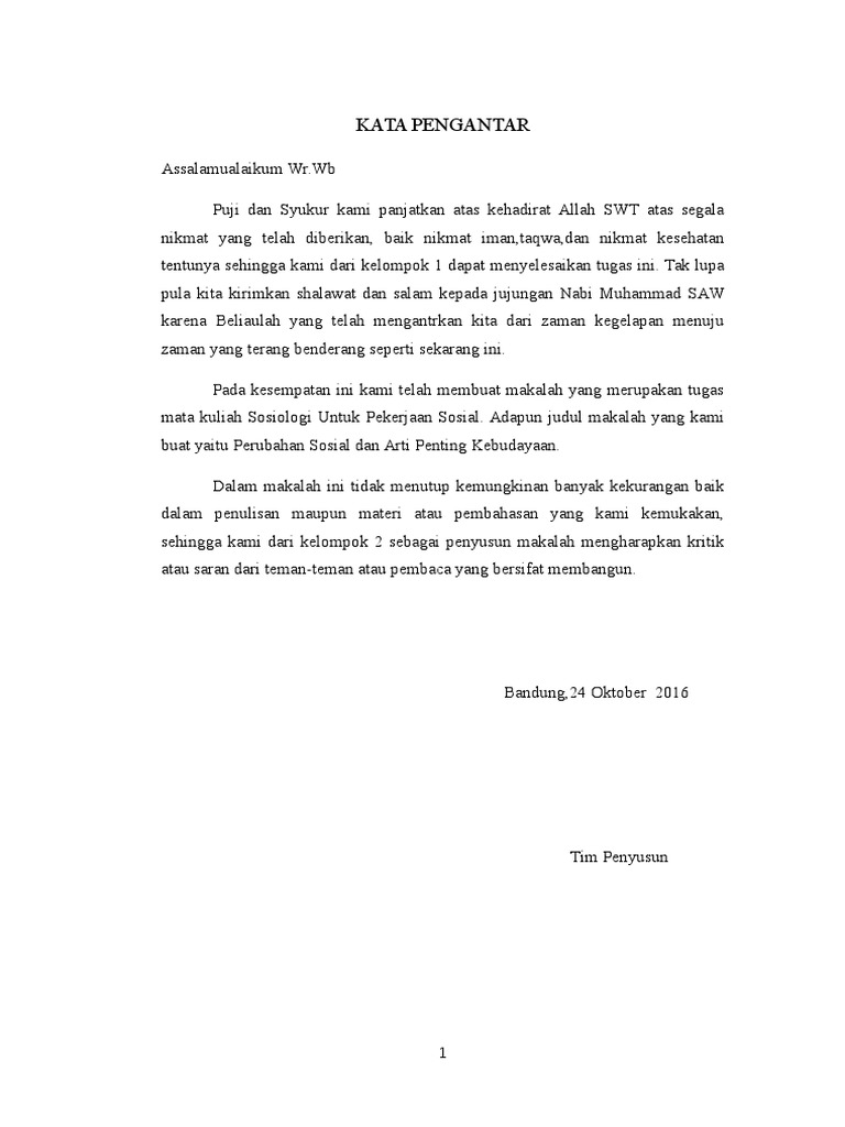 Kata Pengantar Makalah Ips Perubahan Sosial Budaya - Contoh Makalah