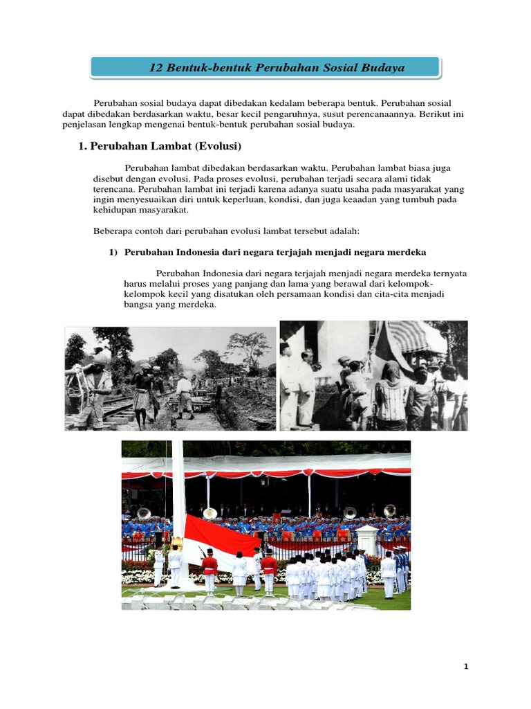 Bentuk Perubahan Sosial Budaya Evolusi, Revolusi & Pengaruh