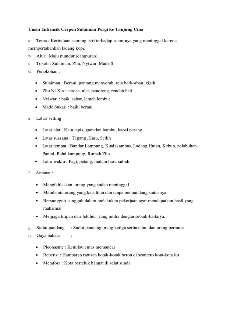 Unsur Intrinsik Dan Ekstrinsik Cerpen Sulaiman Pergi Ke Tanjung Cina