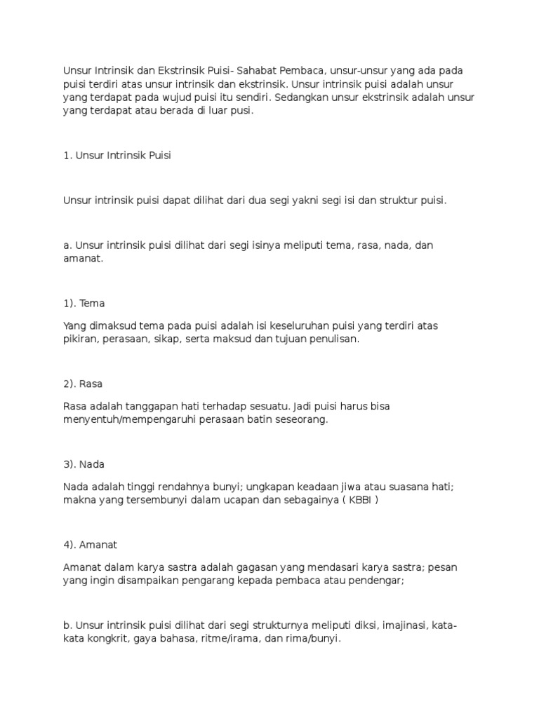 Unsur Intrinsik Dan Ekstrinsik Puisi