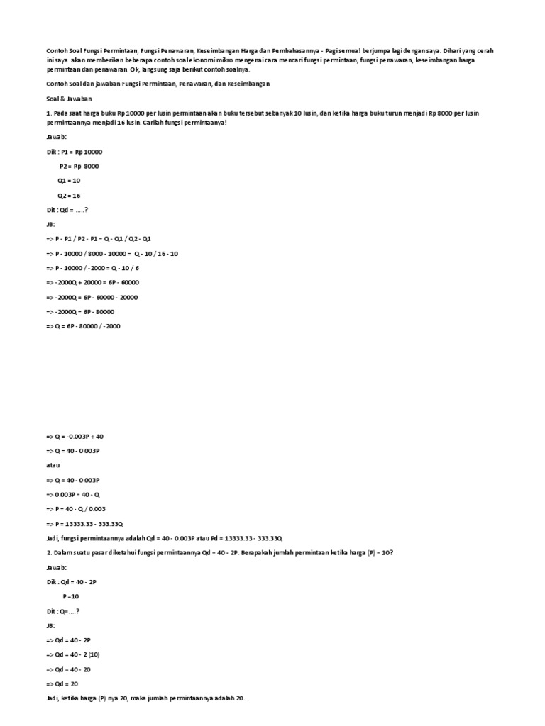 Contoh Soal Fungsi Permintaan Q