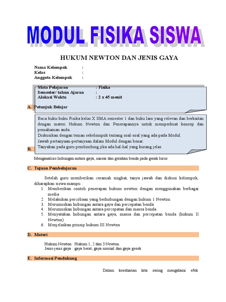 12. RPP 7.docx - RENCANA PELAKSANAAN PEMBELAJARAN(RPP Sekolah Mata Pelajaran Kelas/Semester Materi Pokok Alokasi Waktu SMA Fisika X Ganjil Hukum Newton | Course Hero