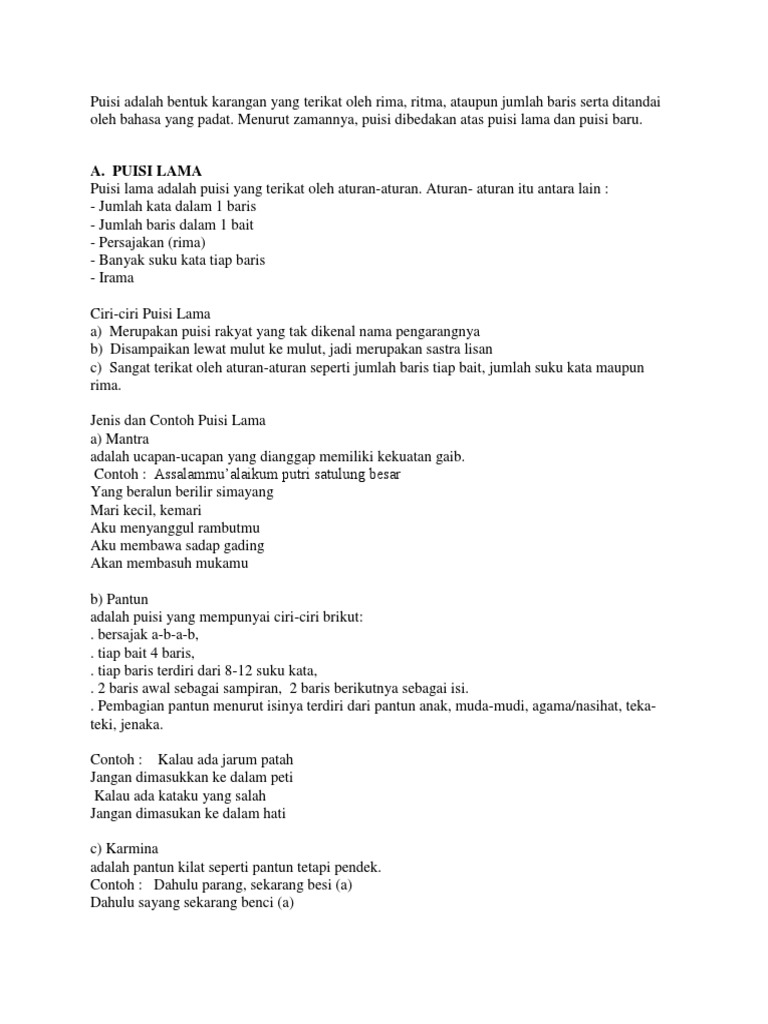 puisi lama dan puisi baru bahasa indonesia - Kumpulan Puisi Indonesia