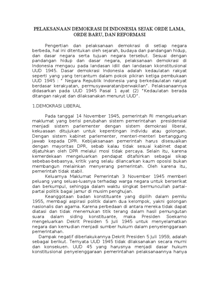 Pelaksanaan Demokrasi Di Indonesia Pada Masa Orde Lama - [DOC Document]