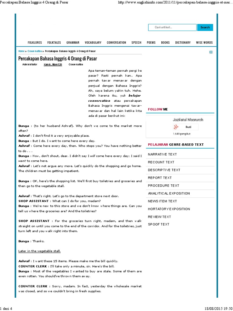 Contoh teks percakapan dalam bahasa inggris - JoshuaGil2’s blog