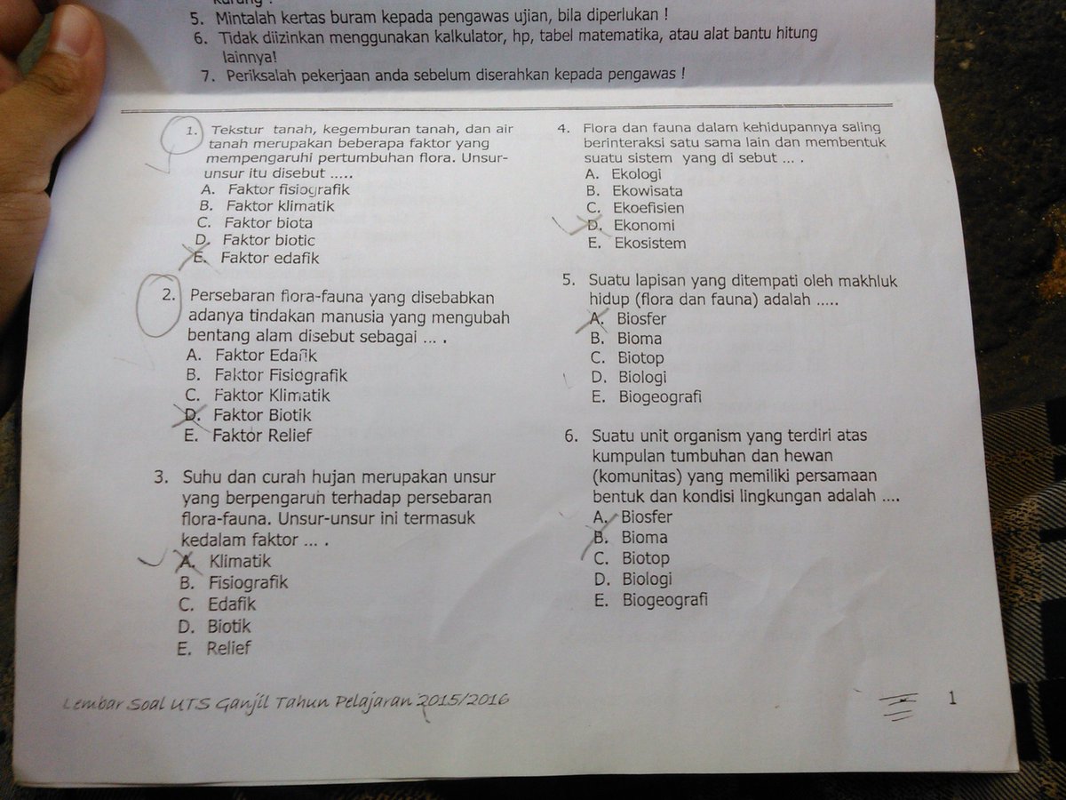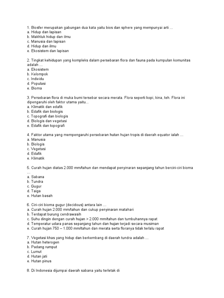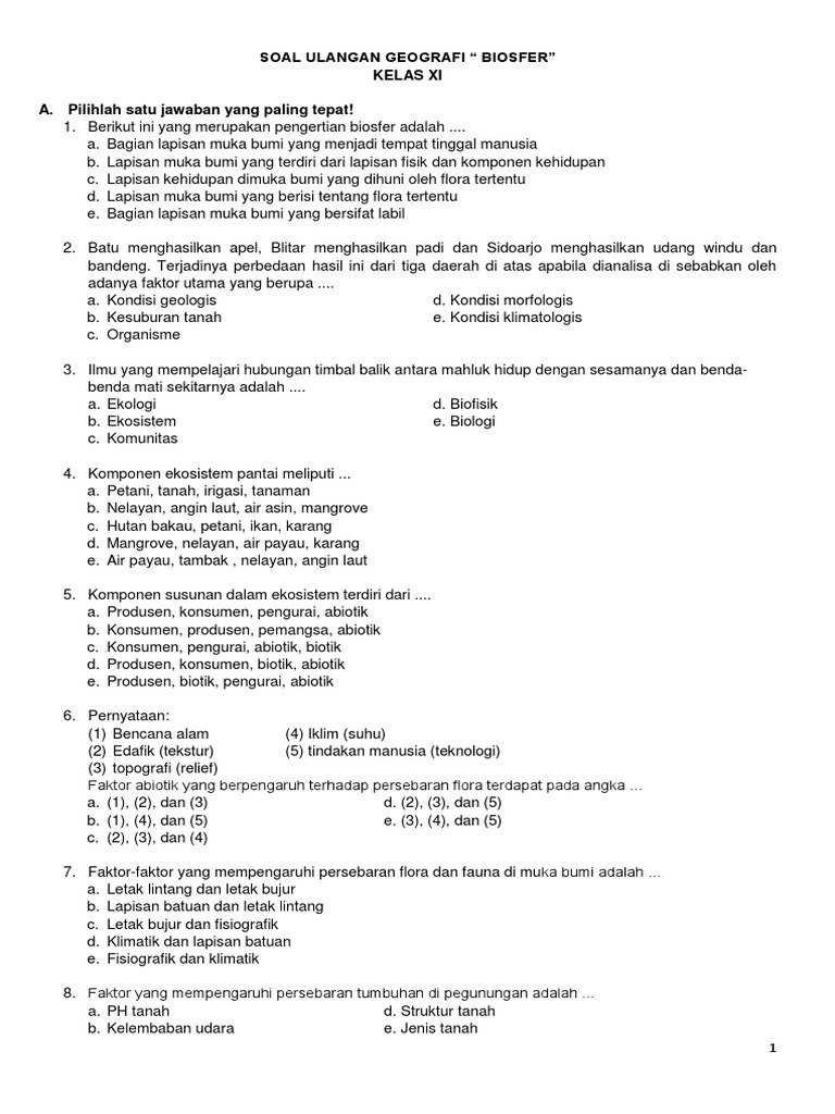Soal Ulangan Geografi “ Biosfer” Kelas Xi A. Pilihlah satu jawaban …