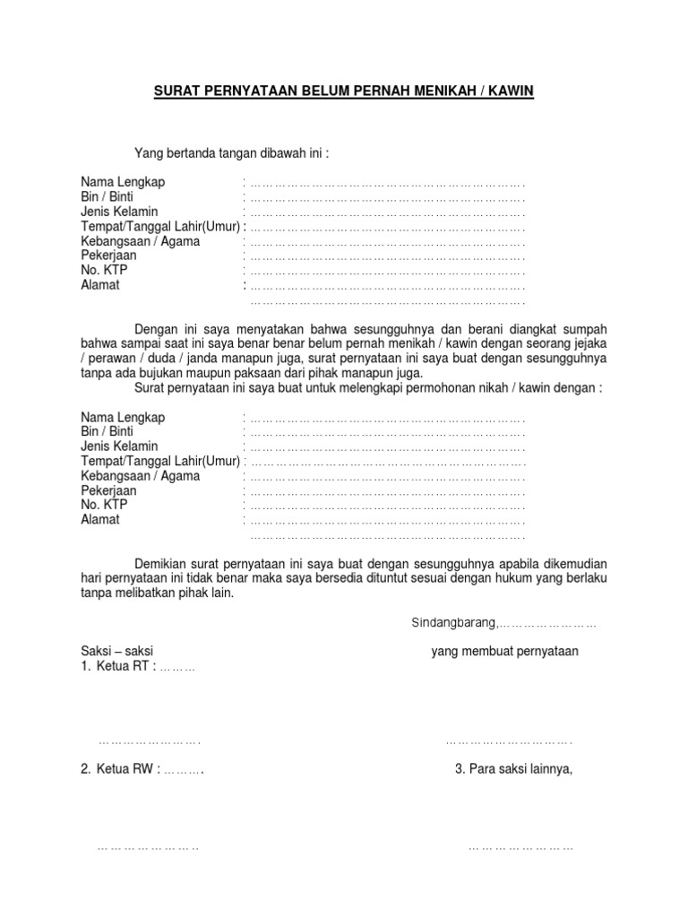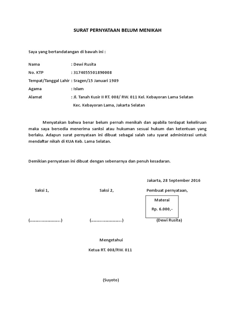 Contoh Surat Pernyataan Belum Pernah Menikah – ID.Lif.co.id