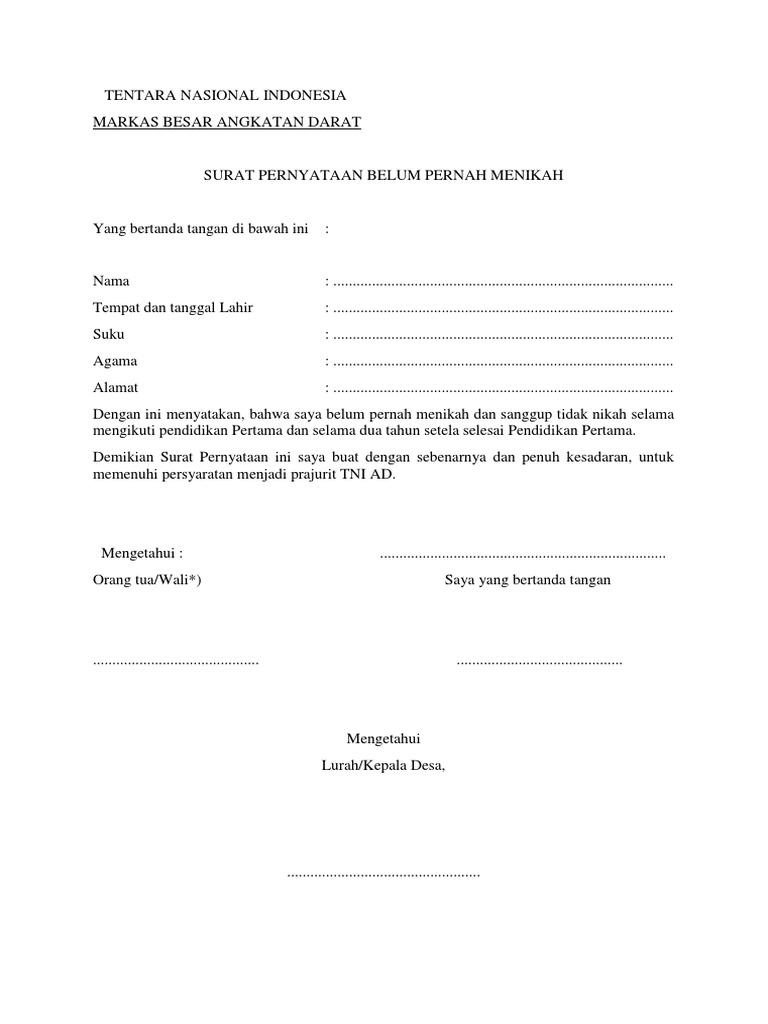 Contoh Surat Pernyataan Belum Menikah Dari Orang Tua - Bagi Contoh …