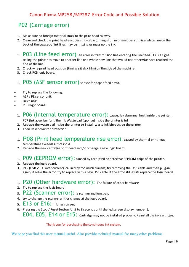 Canon Pixma Mp258 Error Code and Possible Solution | Printer …