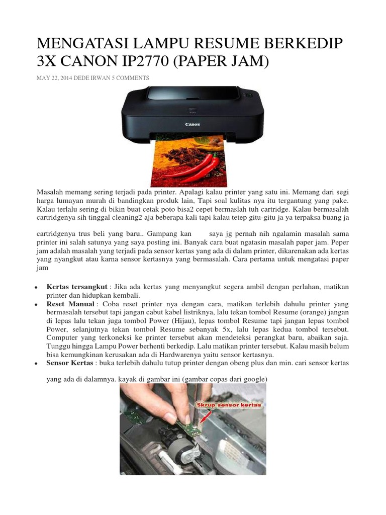 Mengatasi Lampu Resume Berkedip 3x Canon IP2770 (paper jam) | De Irwan