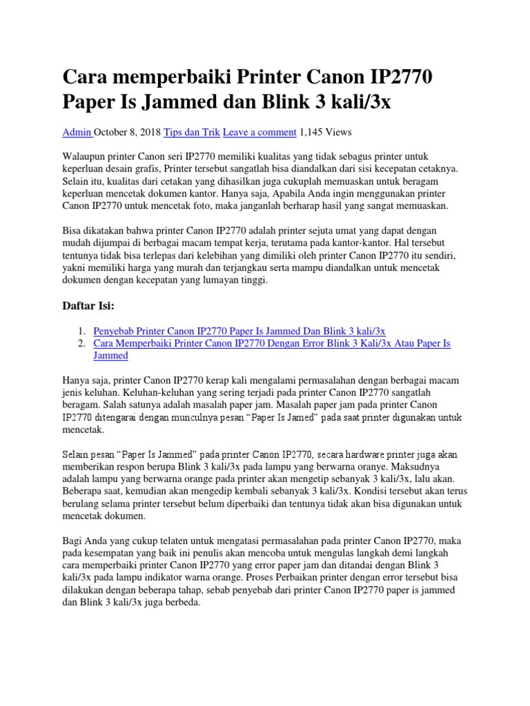 DOC) Mengatasi Paper Jam Canon iP 2770 | Siti Kamila - Academia.edu