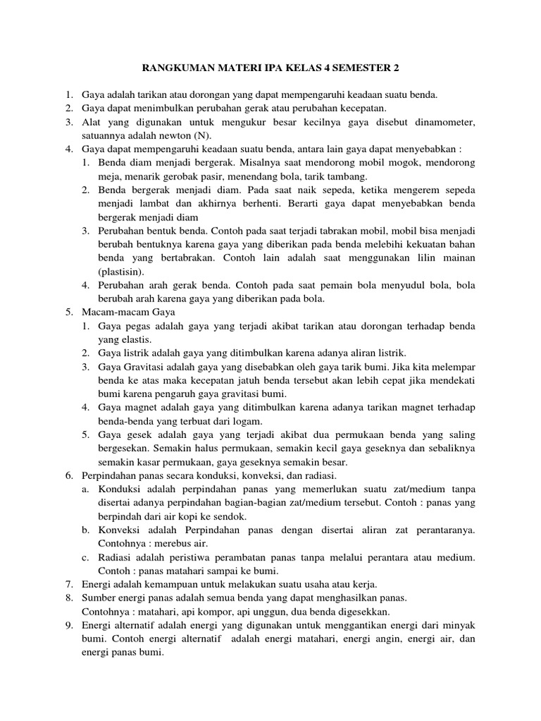 Rangkuman Materi Ipa Kelas 4 Semester 2