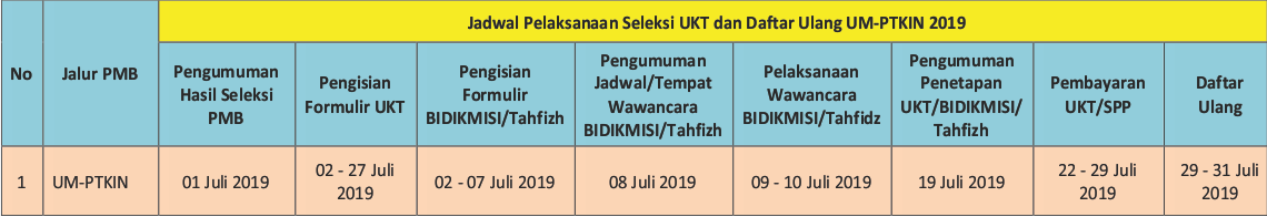 Jadwal Pendaftaran Ulang Calon Mahasiswa Baru Jalur UM-PTKIN 2019