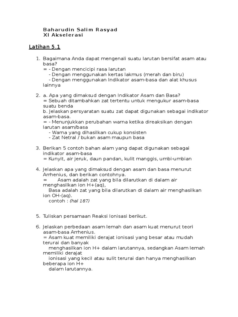 Contoh Soal Asam Kuat Basa Lemah - Barisan Contoh