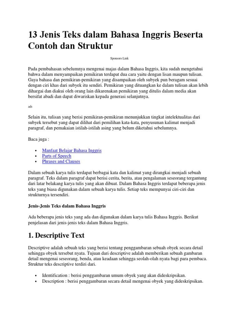 Jenis Teks dalam Bahasa Inggris Pdf Contohnya - Bijak Berbahasa …