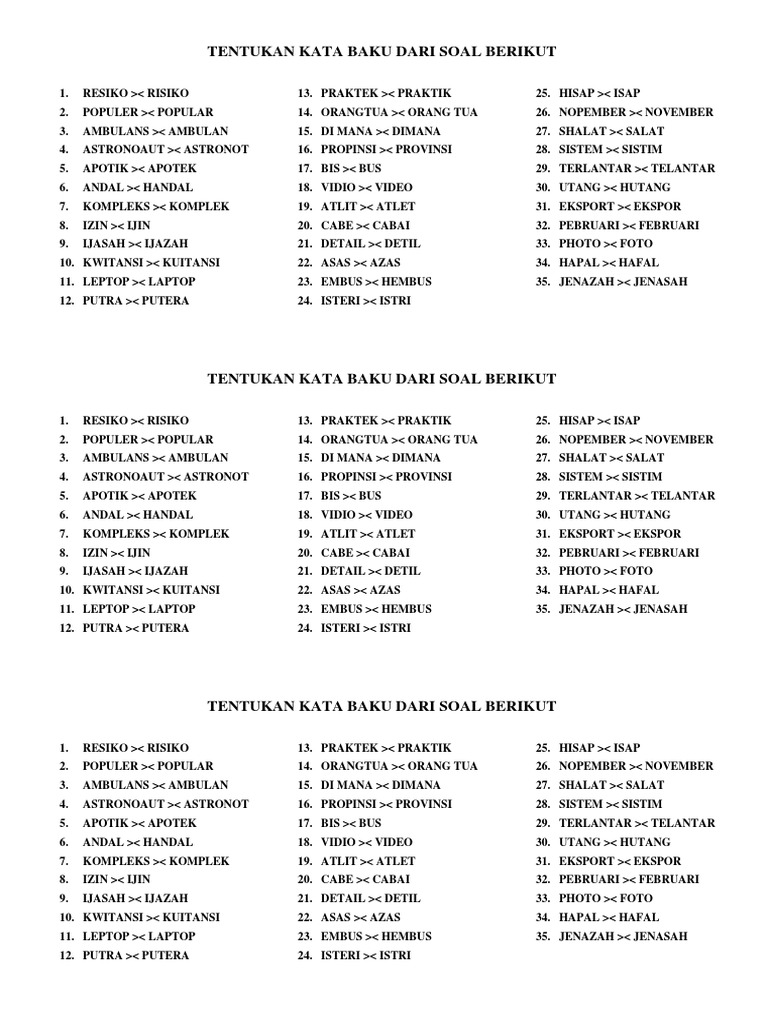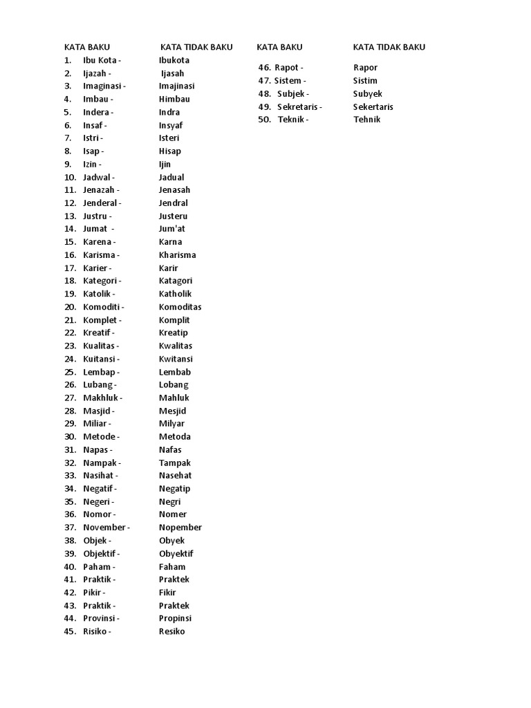 Daftar Kata Baku dan Tidak Baku Bahasa Indonesia PUEBI » Katalisnet