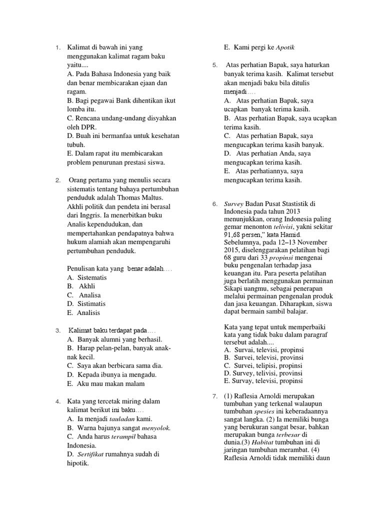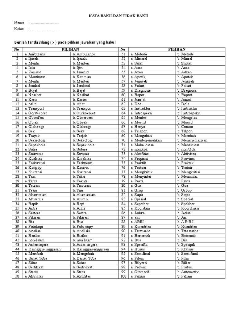 DOC) Pilihlah kata yang baku | agatha dea - Academia.edu