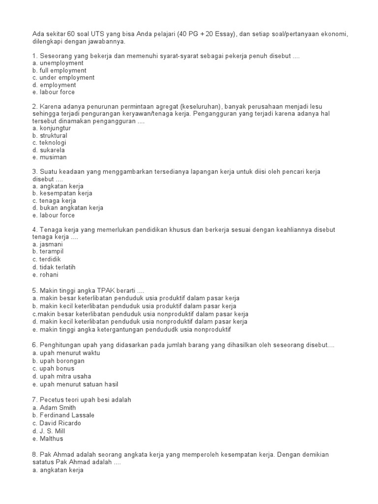 Soal Ekonomi Kelas 11 Tentang Ketenagakerjaan (Soal B …
